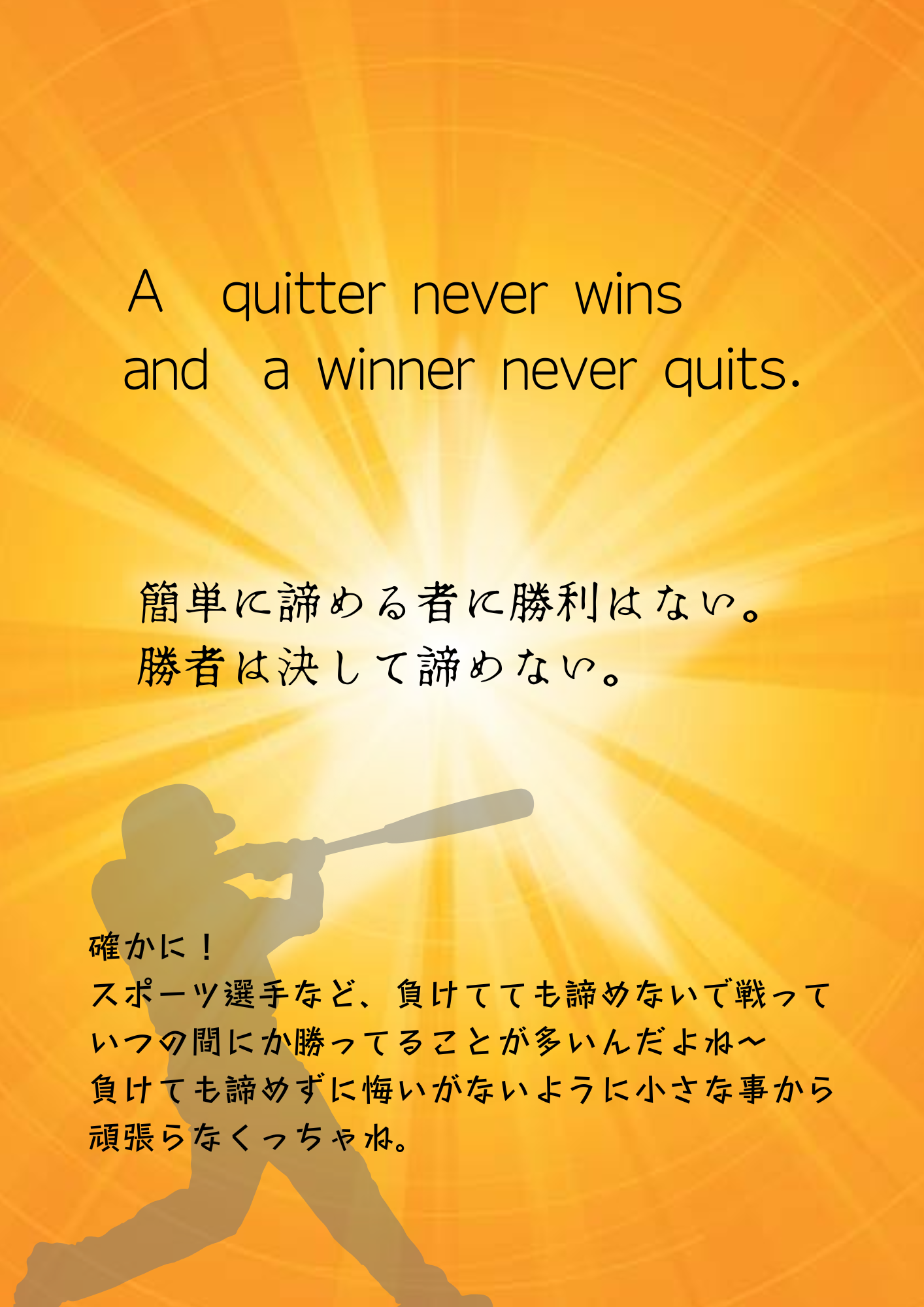8月22日のひとこと、、、A quitter never wins