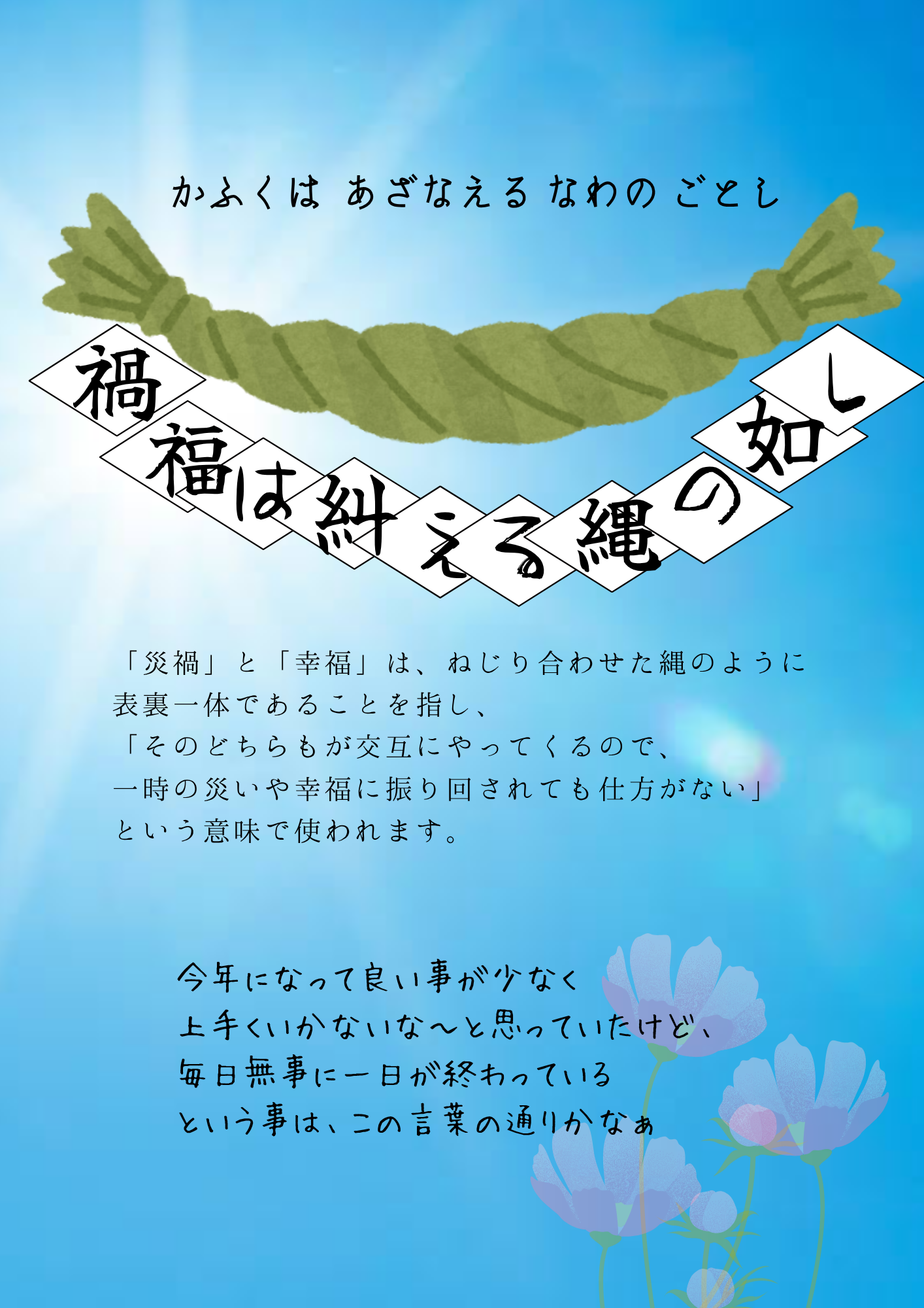 8月20日のひとこと、、、禍福は糾える縄の如し